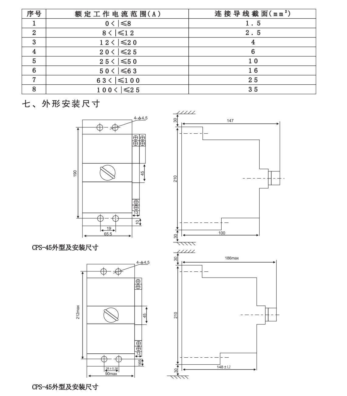 CPS系列控制与保护开关电器,主要用于交流50Hz(60Hz)额定工作电压至690V,主体额定电流自3A至125A(智能控制器可调工作电流0.4A至125A)的电力系统中接通、承载和分离正常条件下(包括规定的过载条件)的电流,也能够接通、承载并分析规定条件下的非正常电流(如短路电流等)